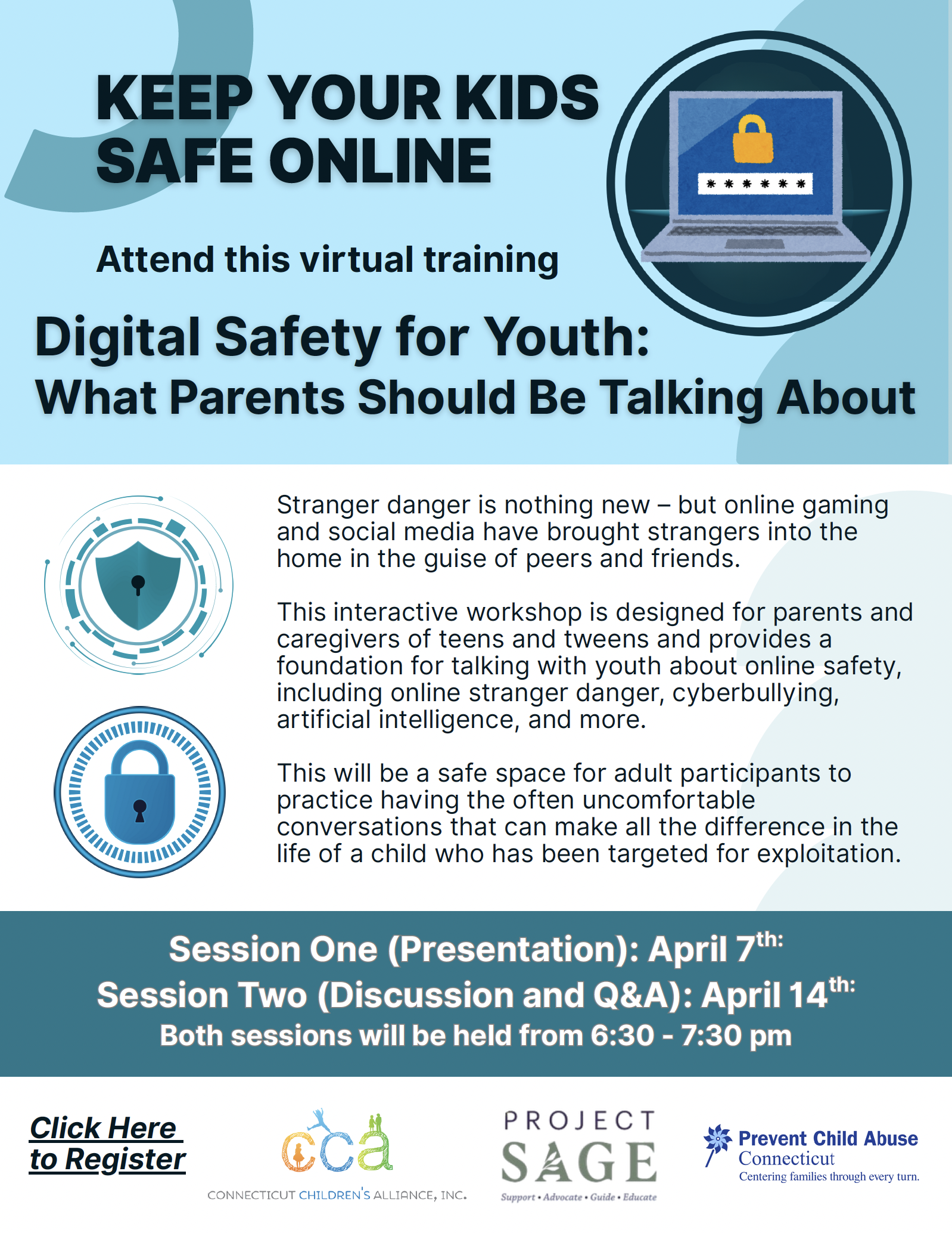 Stranger danger is nothing new – but online gaming and social media have brought strangers into the home in the guise of peers and friends. With platforms changing constantly and new apps appearing every day, how can adults keep their kids safe from online exploitation? This interactive, 60-minute workshop designed for parents and caregivers of teens and tweens provides a foundation for talking with youth about online safety, including online stranger danger, cyberbullying, artificial intelligence, and more. This will be a safe space for adult participants to practice having the often-uncomfortable conversations that can make all the difference in the life of a child who has been targeted for exploitation.